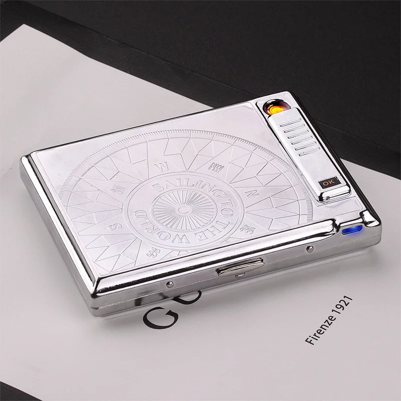 Special Offer Metalowy papierosowy pudełko z bezpłomieniowa zapalniczka elektroniczna wiatroszczelna cewki zapalniczki 20 sztuk papierosów uchwyt pojemnik Discount 0% Today!