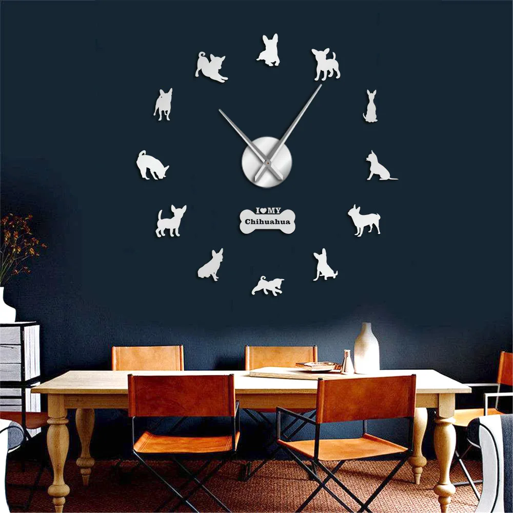 Special Offer Meksyk rasy psów Chihuahua DIY 3D akrylowy zegar ścienny z dużymi wskazówki zegara lustrzany efekt numery naklejki pies Pet Giant zegar ścienny Discount 10% Today!